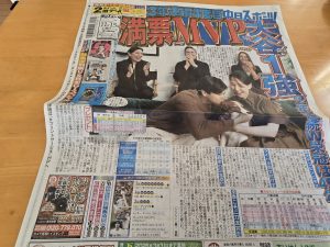 大谷の満票MVPを報じた中日スポーツ1面