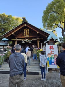 神社掃除のあとはみんなでお参り。かつては、たつ江(伊神舞子)も私とともに、この中にいた