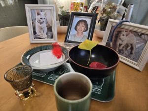 わたくしは、このふた葉を帰宅後さっそく、舞とシロちゃんの遺影の前に供えた