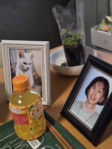 ひととおり終えると、きょうも愛用のスマホ手に🎵エーデルワイス、🎵みかんの花咲く丘、🎵能登半島地震と豪雨水害の復興応援歌【能登の明かり(歌は岡ゆう子さん)】を今は亡き妻伊神舞子(たつ江)と愛猫シロちゃん(オーロラレインボー)の遺影を前に共に聴き、口ずさむのである。