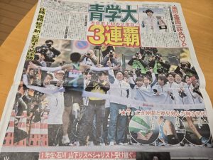このうち往路・山登りの5区では青山学院の黒田朝日が区間新の1時間7分16秒の脅威の走りで5位から一気に順位を上げ、19・3㌔地点では早稲田大学を捉えてトップに浮上。小田原で2分12秒あった早稲田との差を一気に逆転、往路優勝を飾った。また復路は本日、箱根・芦ノ湖駐車場入り口~東京・大手町の読売新聞東京本社前までの全5区間、109.6㌔のコースで行われ、青山学院大学が10時間37分34秒の総合タイム更新を果たし3連覇を達成。2位は國學院大、3位は順天堂大。10位までに与えられるシード権を20年連続で保持していた東洋大は14位となり、今回で逃す結果となった。というわけで、往路、復路とも青山学院大が盤石のレースで圧倒的な強さを見せて、終わったのである。