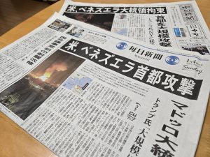 さてさて。本日4日付の朝刊1面は案の定、【米、ベネズエラ大統領拘束 首都を大規模攻撃 トランプ氏「NYに移送」】(中日)と各紙とも米国によるベネズエラ攻撃を報道している。何たることか。人間たちのやることはタカがしれていることは承知しているが。正月早々から、なんということか――と悲しくなってしまうのである。とはいえ、ボクと同い年の米大統領トランプなる人物は、真剣である。ベネズエラはこの先一体全体どうなってしまうのか。カラカスなどかつてピースボートの旅で訪れた風味豊かな国だけに心配である。私の力ではどうにもできないのも事実だが。なんとも悲しい一件である。